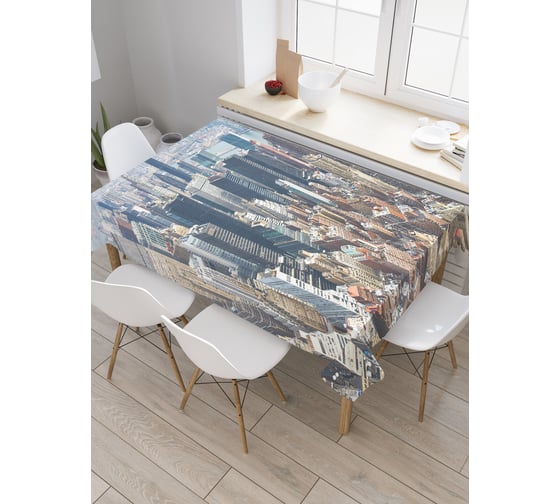 Прямоугольная скатерть JoyArty Городские высоты из сатена tc_30946_120x145