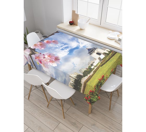 Прямоугольная скатерть JoyArty Городской храм из сатена tc_3385_120x145