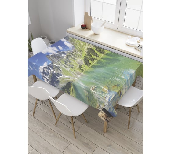 Прямоугольная скатерть JoyArty Горы у озера из сатена tc_32097_120x145