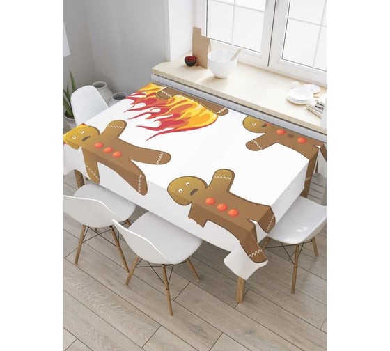 Прямоугольная скатерть JoyArty Имбирный человечек в опасности из сатена tc_38357_120x145