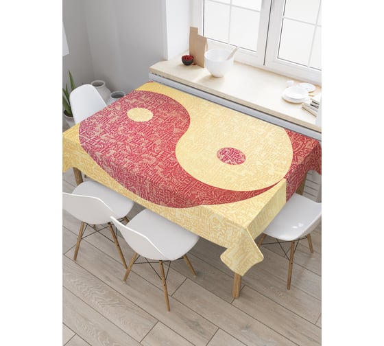 Прямоугольная скатерть JoyArty Инь и ян в иероглифах из сатена tc_18573_120x145