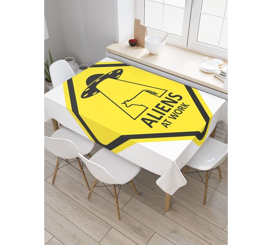 Прямоугольная скатерть JoyArty Инопланетяне на работе из сатена tc_19611_120x145