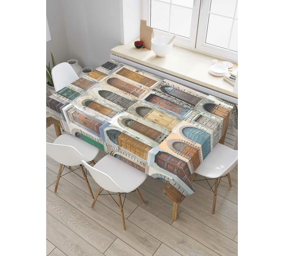 Прямоугольная скатерть JoyArty Изобилие дверей из сатена tc_6648_120x145