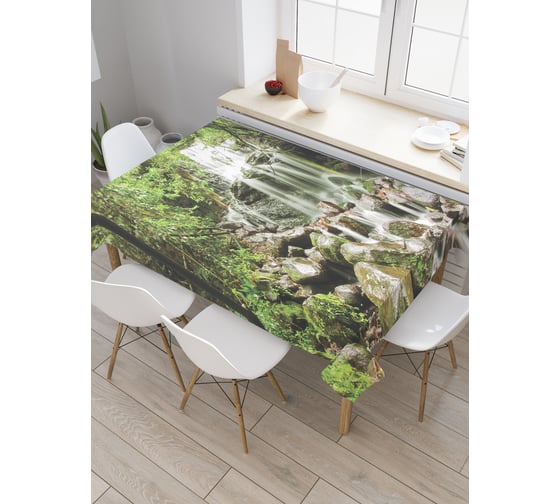 Прямоугольная скатерть JoyArty Камни на водопаде из сатена tc_19695_120x145