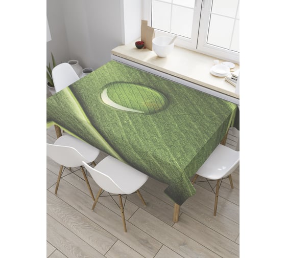 Прямоугольная скатерть JoyArty Капля росы на листе из сатена tc_27920_120x145