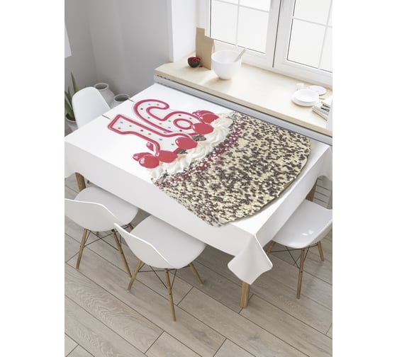 Прямоугольная скатерть JoyArty Клубнички на торте из сатена tc_34231_120x145