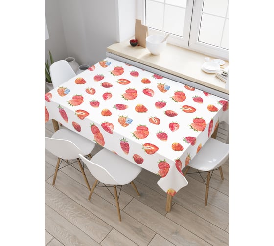 Прямоугольная скатерть JoyArty Клубничный арт из сатена tc_50076_120x145