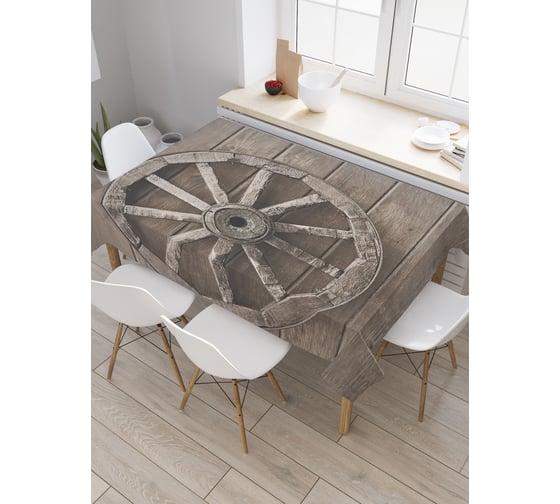 Прямоугольная скатерть JoyArty Колесо на деревянной стене из сатена tc_38267_120x145