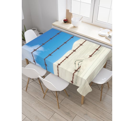 Прямоугольная скатерть JoyArty Колючая проволока в пустыне из сатена tc_9990_120x145