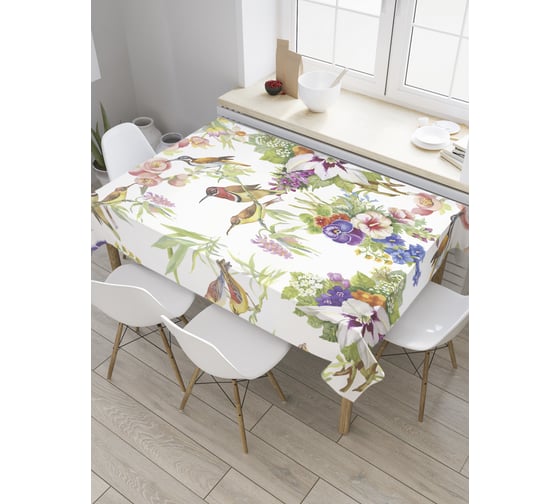 Прямоугольная скатерть JoyArty Композиции цветов и птичек из сатена tc_28152_120x145