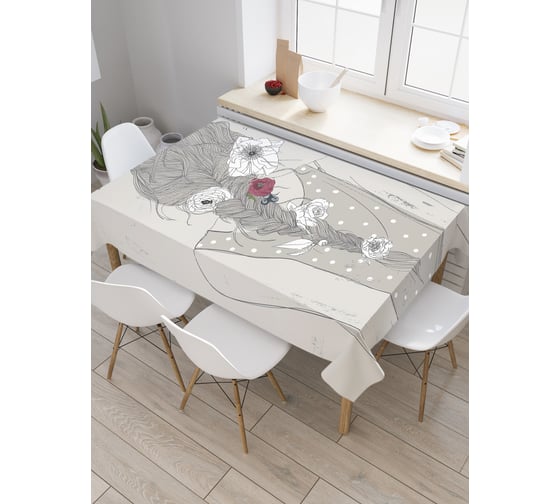 Прямоугольная скатерть JoyArty Коса с цветами из сатена tc_19081_120x145