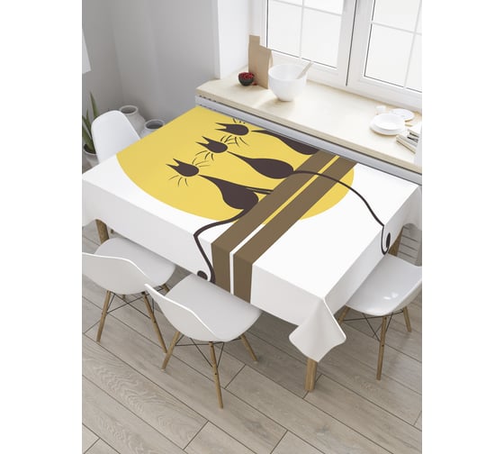 Прямоугольная скатерть JoyArty Кошачье трио из сатена tc_8880_120x145