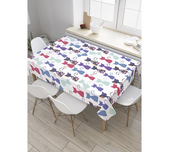 Прямоугольная скатерть JoyArty Кошачий клуб из сатена tc_8887_120x145