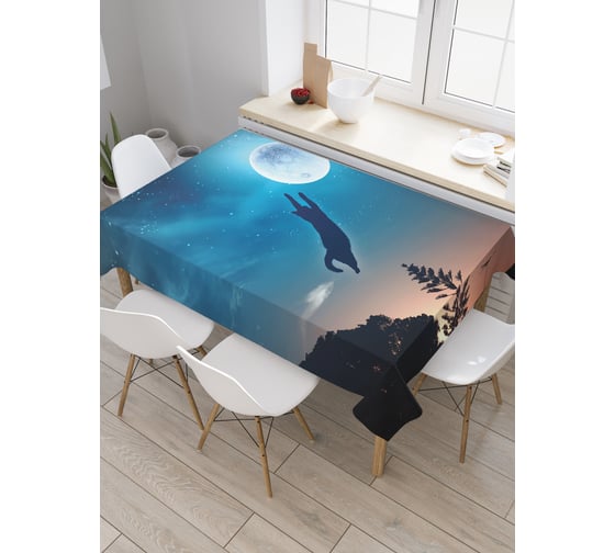 Прямоугольная скатерть JoyArty Кот прыгает на луну из сатена tc_25245_120x145