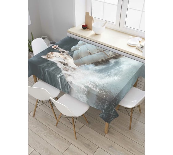 Прямоугольная скатерть JoyArty Кот разрушает корабль из сатена tc_7493_120x145