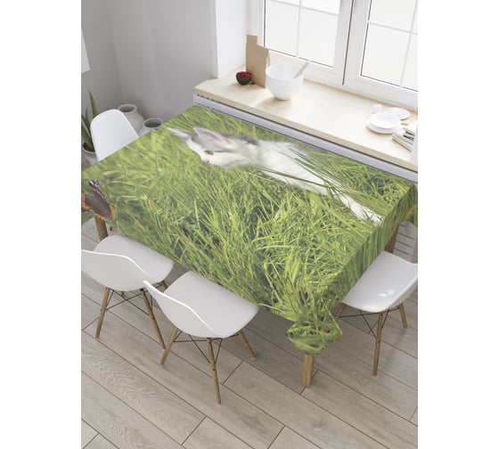 Прямоугольная скатерть JoyArty Котик и бабочка из сатена tc_28438_120x145