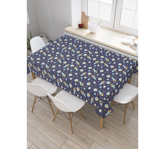 Прямоугольная скатерть JoyArty Котик в космосе из сатена tc_62101_120x145