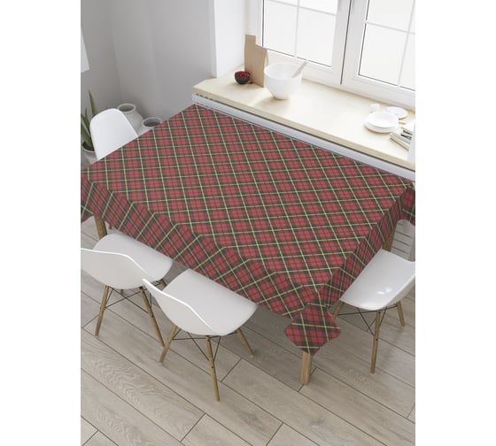 Прямоугольная скатерть JoyArty Красно-желтая диагональная клетка из сатена tc_31133_120x145