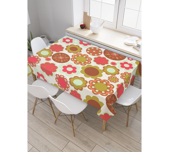 Прямоугольная скатерть JoyArty Круговые цветочные узоры из сатена tc_30483_120x145
