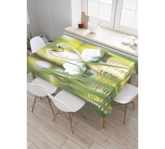 Прямоугольная скатерть JoyArty Лебединая любовь из сатена tc_2619_120x145