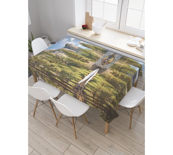 Прямоугольная скатерть JoyArty Лесное отраженье из сатена tc_19010_120x145