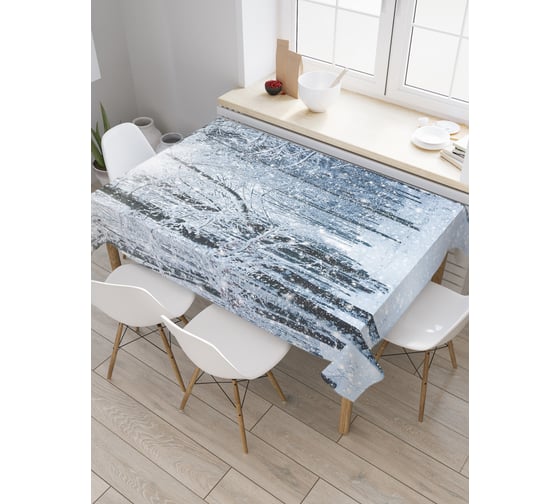 Прямоугольная скатерть JoyArty Лесные снега из сатена tc_5751_120x145