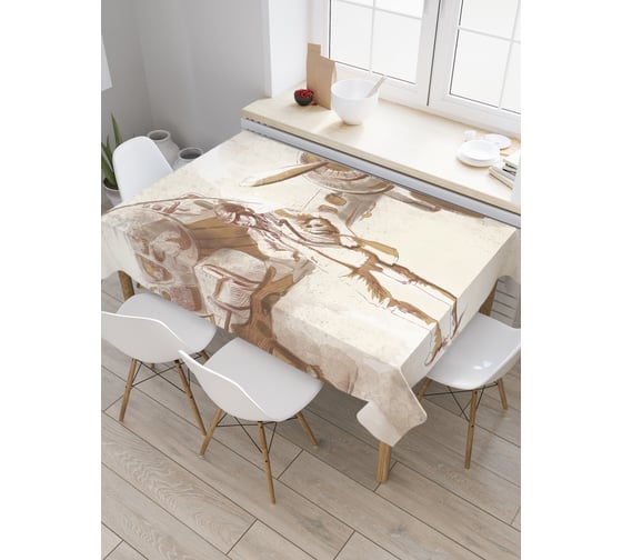 Прямоугольная скатерть JoyArty Летчик на фоне самолета из сатена tc_5515_120x145