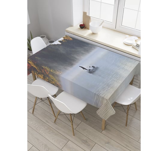 Прямоугольная скатерть JoyArty Лодка с людьми в горах из сатена tc_31179_120x145