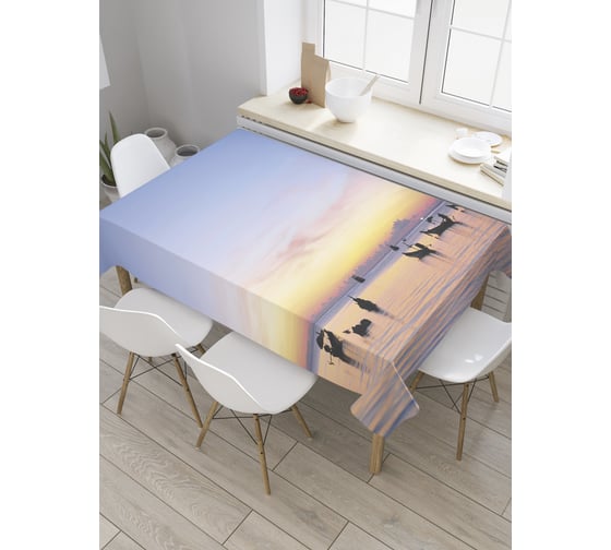 Прямоугольная скатерть JoyArty Лодки в ожидании из сатена tc_32989_120x145