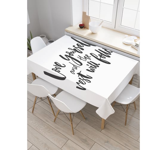 Прямоугольная скатерть JoyArty Люби себя, а остальное последует из сатена tc_37441_120x145