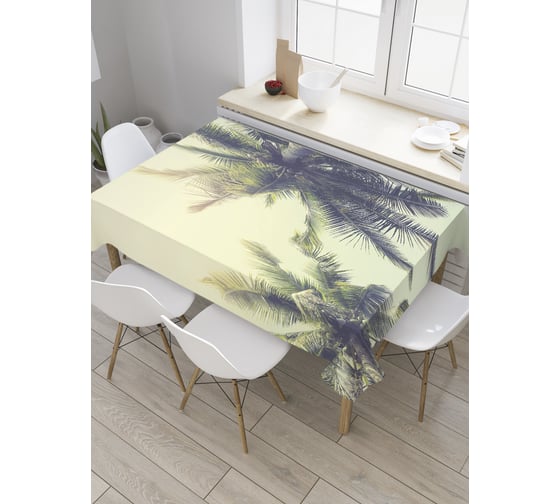 Прямоугольная скатерть JoyArty Макушки пальм из сатена tc_36559_120x145