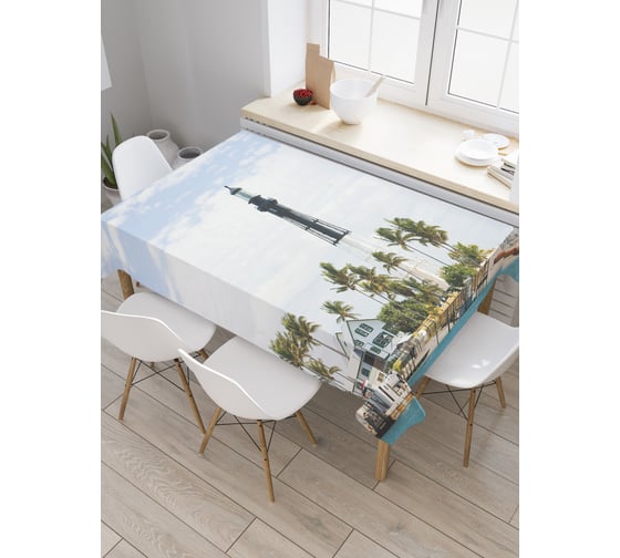 Прямоугольная скатерть JoyArty Маяк среди пальм из сатена tc_36796_120x145