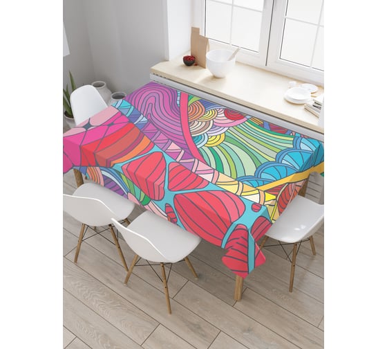 Прямоугольная скатерть JoyArty Мир вязания из сатена tc_207083_120x145 защищает поверхность стола от грязи, легко стирается и практически не мнется. Материал, из которого сшита скатерть, имеет рельефную текстуру, обладает высокой износостойкостью, подходит для кухни и выдерживает большое число стирок. Скатерть относится к категории фототекстиля, она поможет оформить кухню. Изображение наносится методом сублимационной печати, благодаря чему рисунок обладает яркостью и четкостью, что позволяет подобрать этот аксессуар в любом стиле и цветовой гамме. Скатерти представлены в двух типоразмерах.