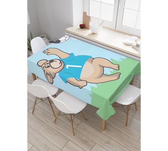 Прямоугольная скатерть JoyArty Мишка футболист из сатена tc_5057_120x145