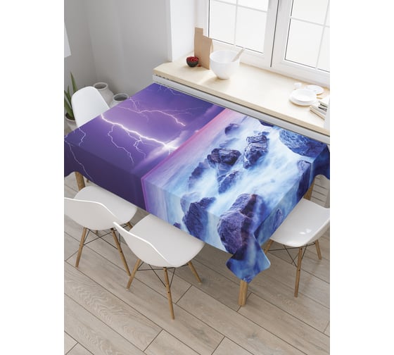 Прямоугольная скатерть JoyArty Молнии в тумане из сатена tc_3863_120x145