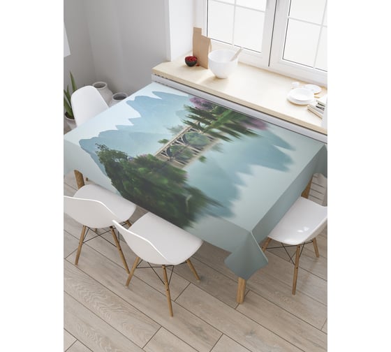 Прямоугольная скатерть JoyArty Мост на фоне гор из сатена tc_20635_120x145