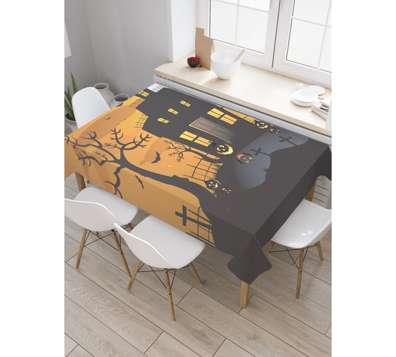 Прямоугольная скатерть JoyArty Мрачный замок на фоне луны из сатена tc_5850_120x145