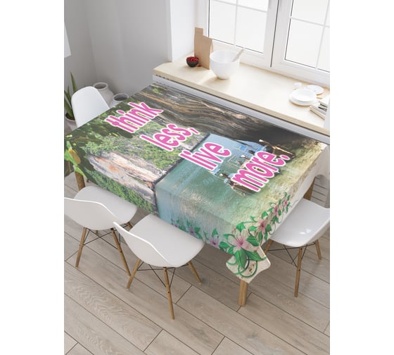 Прямоугольная скатерть JoyArty Надпись на фоне горы из сатена tc_5025_120x145