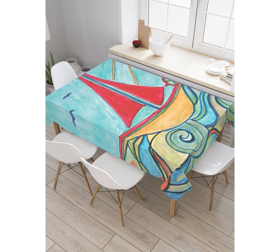 Прямоугольная скатерть JoyArty Нарисованный кораблик из сатена tc_38439_120x145