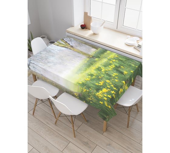 Прямоугольная скатерть JoyArty Нарциссы в лесу из сатена tc_29123_120x145