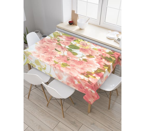 Прямоугольная скатерть JoyArty Нежное цветение сакуры из сатена tc_29323_120x145