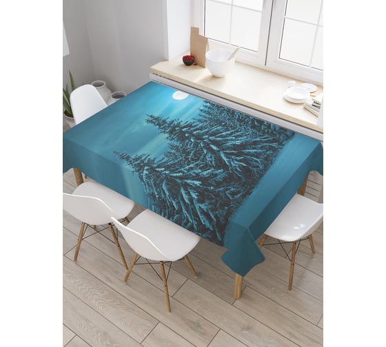 Прямоугольная скатерть JoyArty Ночные ели из сатена tc_38837_120x145