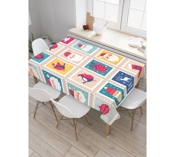 Прямоугольная скатерть JoyArty Новогодние марки из сатена tc_21469_120x145