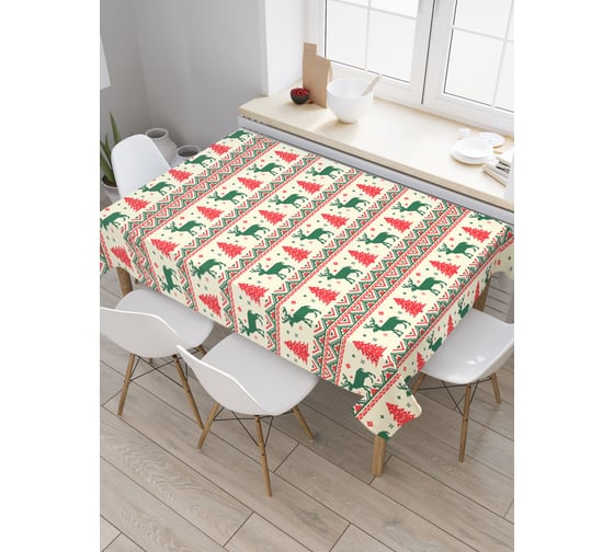 Прямоугольная скатерть JoyArty Новогодний орнамент из сатена tc_50935_120x145 защищает поверхность стола от грязи, легко стирается и практически не мнется. Материал, из которого сшита скатерть, имеет рельефную текстуру, обладает высокой износостойкостью, подходит для кухни и выдерживает большое число стирок. Скатерть относится к категории фототекстиля, она поможет оформить кухню. Изображение наносится методом сублимационной печати, благодаря чему рисунок обладает яркостью и четкостью, что позволяет подобрать этот аксессуар в любом стиле и цветовой гамме. Скатерти представлены в двух типоразмерах.