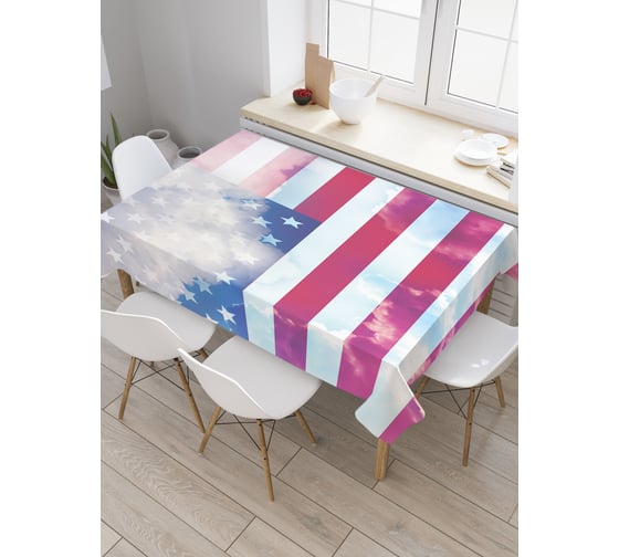 Прямоугольная скатерть JoyArty Облака на флаге америки из сатена tc_20723_120x145 защищает поверхность стола от грязи, легко стирается и практически не мнется. Материал, из которого сшита скатерть, имеет рельефную текстуру, обладает высокой износостойкостью, подходит для кухни и выдерживает большое число стирок. Скатерть относится к категории фототекстиля, она поможет оформить кухню. Изображение наносится методом сублимационной печати, благодаря чему рисунок обладает яркостью и четкостью, что позволяет подобрать этот аксессуар в любом стиле и цветовой гамме. Скатерти представлены в двух типоразмерах.