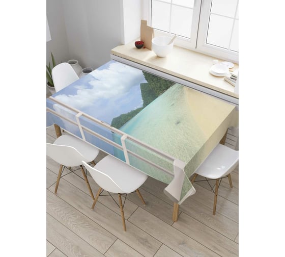 Прямоугольная скатерть JoyArty Окно к островам из сатена tc_5172_120x145
