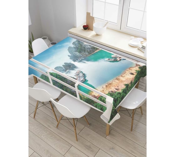 Прямоугольная скатерть JoyArty Окно на берегу из сатена tc_7787_120x145