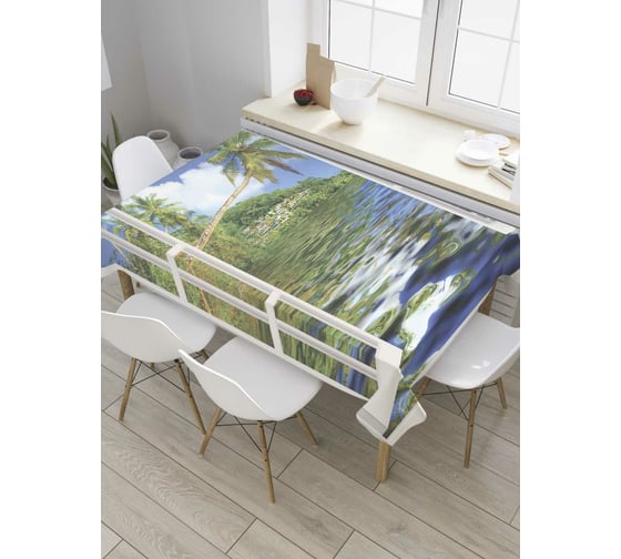 Прямоугольная скатерть JoyArty Окно на море из сатена tc_7962_120x145