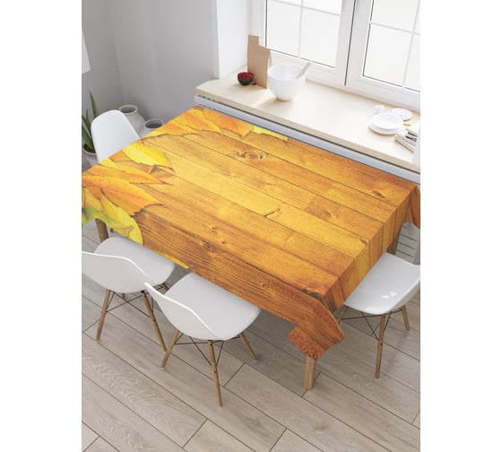 Прямоугольная скатерть JoyArty Осень на досках из сатена tc_37678_120x145