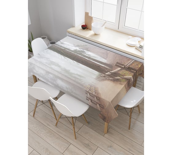 Прямоугольная скатерть JoyArty Отуманенный лес из сатена tc_19035_120x145
